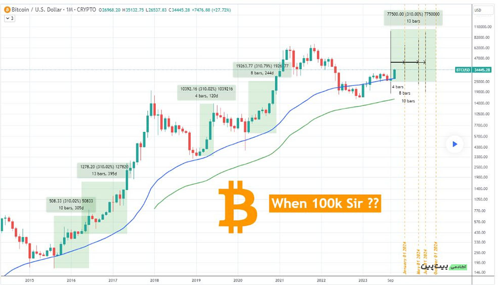 چه زمانی بیت کوین به ۱۰۰ هزار دلار میرسد؟ آیا تاریخ دوباره تکرار میشود؟