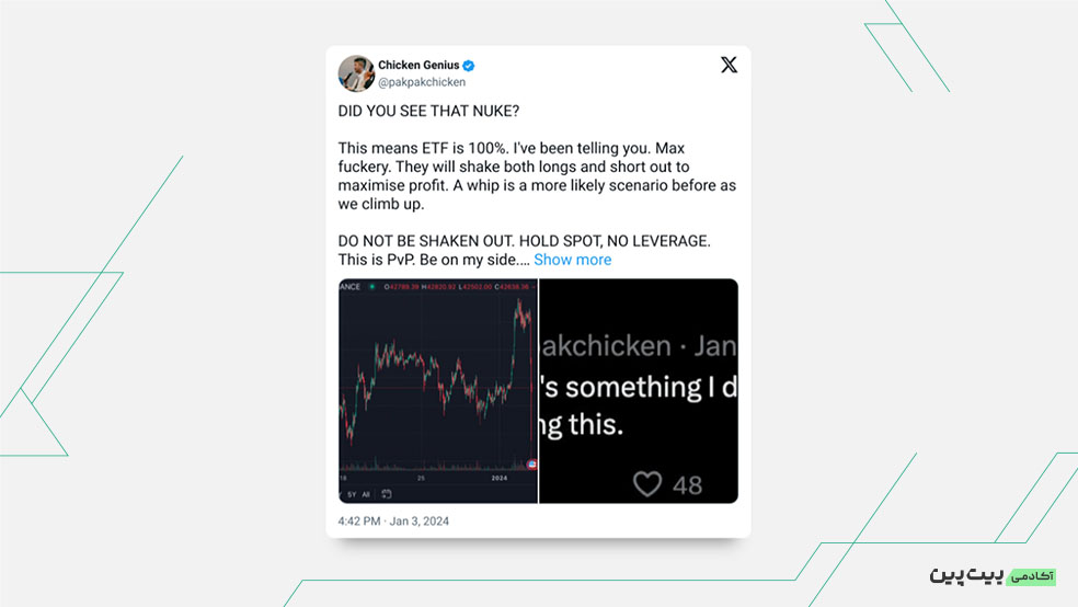 ما به تازگی دیدیم که چگونه اخبار منفی مربوط به ETF توسط بازار با سقوط قیمتها همراه شده است. محرک سقوط خبر زیر در توییتر بود که بعداً ثابت شد دروغ بوده است.